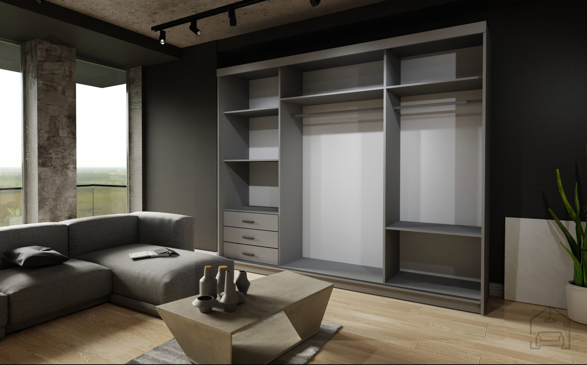 Notranja organizacija: Omara je opremljena s policami in obešalom za oblačila, kar omogoča praktično organizacijo vaše garderobe. Velika notranjost ponuja dovolj prostora za oblačila, čevlje in druge predmete.