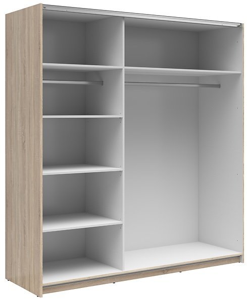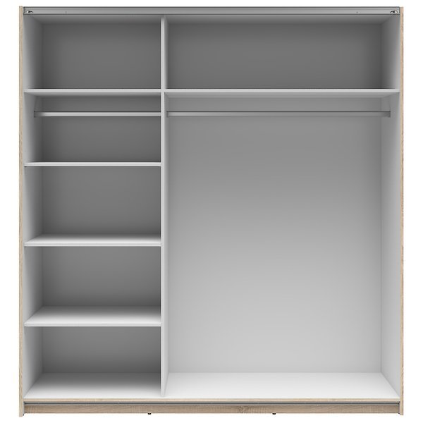 Dimenzije: 1830x600x1955 mm Garderobna omara z drsnimi vrati Tetrix je izjemen kos pohištva, ki bo vašemu domu dodal funkcionalnost in estetski čar. Zasnovana je za optimalno organizacijo vaših oblačil in tekstila, pri čemer sledi sodobnim trendom in vašim potrebam.
