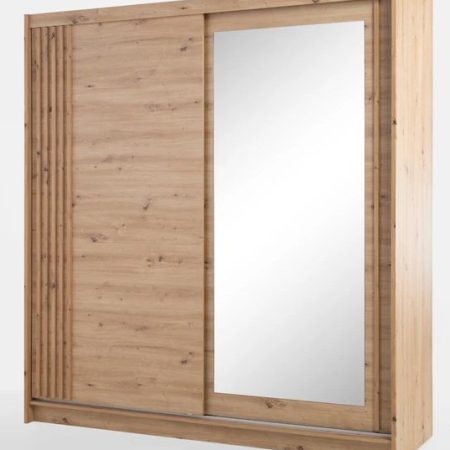 Odkrijte prefinjenost in funkcionalnost z garderobno omaro z drsnimi vrati Toronto. Dimenzije izdelka 200x60x215 cm so idealne za vsak dom, ne glede na velikost prostora. Ta omara je prava izbira za tiste, ki cenijo estetiko, kakovost, in praktičnost. Izdelana iz visokokakovostne laminirane plošče v barvi hrast artisan, ta omara doda vašemu prostoru naraven in topel videz.