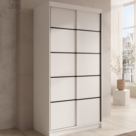 Verto 100 izstopa po svoji elegantni zasnovi, ki vključuje moderne aluminijaste vodila. Ta vodila omogočajo gladko in tiho drsenje vrat, kar povečuje uporabniško izkušnjo in funkcionalnost omare. Njena preprosta zasnova in trdna konstrukcija zagotavljata, da se omara prilega v vsak prostor, bodisi v spalnico, predsobo ali pisarno. Bela barva dodatno poudari njen eleganten videz in omogoča enostavno kombiniranje z ostalim pohištvom in dekorjem.