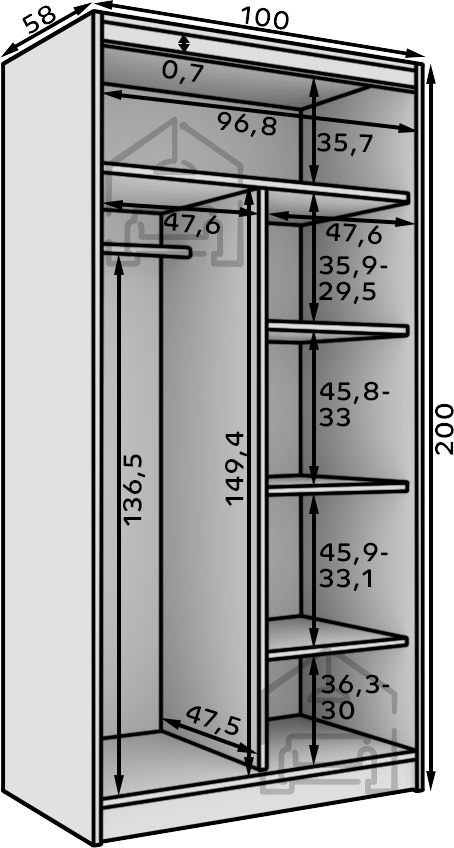 - Prostornost in učinkovitost: dimenzije 100x58x200 cm nudijo dovolj prostora za organizacijo in shranjevanje, ne da bi zavzemale preveč prostora v sobi.