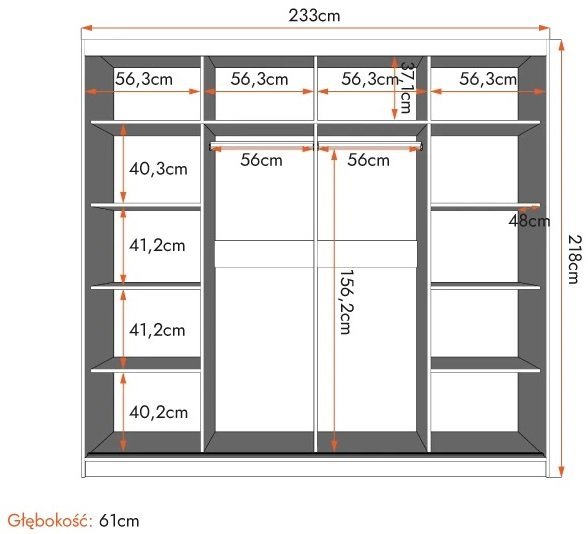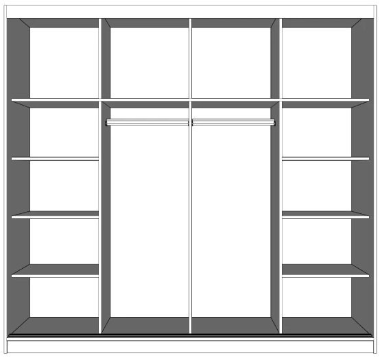 zadnja stran omare izdelana iz HDF ploščeDimenzije: 2330x2180x610 mm Garderobna omara Werona L 2D - 233 cm