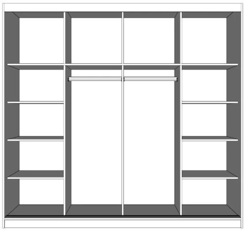 Omara Werona je zasnovana s sistemom drsnih vrat, ki omogoča enostavno uporabo in prihrani prostor. Z razdelitvijo na dva dela nudi obilico shranjevanja – več prostornimi policami in tirnico za oblačila, ki zagotavljajo, da so vaša oblačila vedno na dosegu roke. Ne glede na to, ali potrebujete prostor za oblačila, dodatke ali druge predmete, ta omara zagotavlja dovolj prostora za vse.