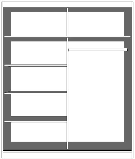 Omara ima sistem drsnih vrat, ki olajša uporabo in ne zavzema prostora. Razdeljen je na dva dela, opremljena z več prostornimi policami in tirnico.