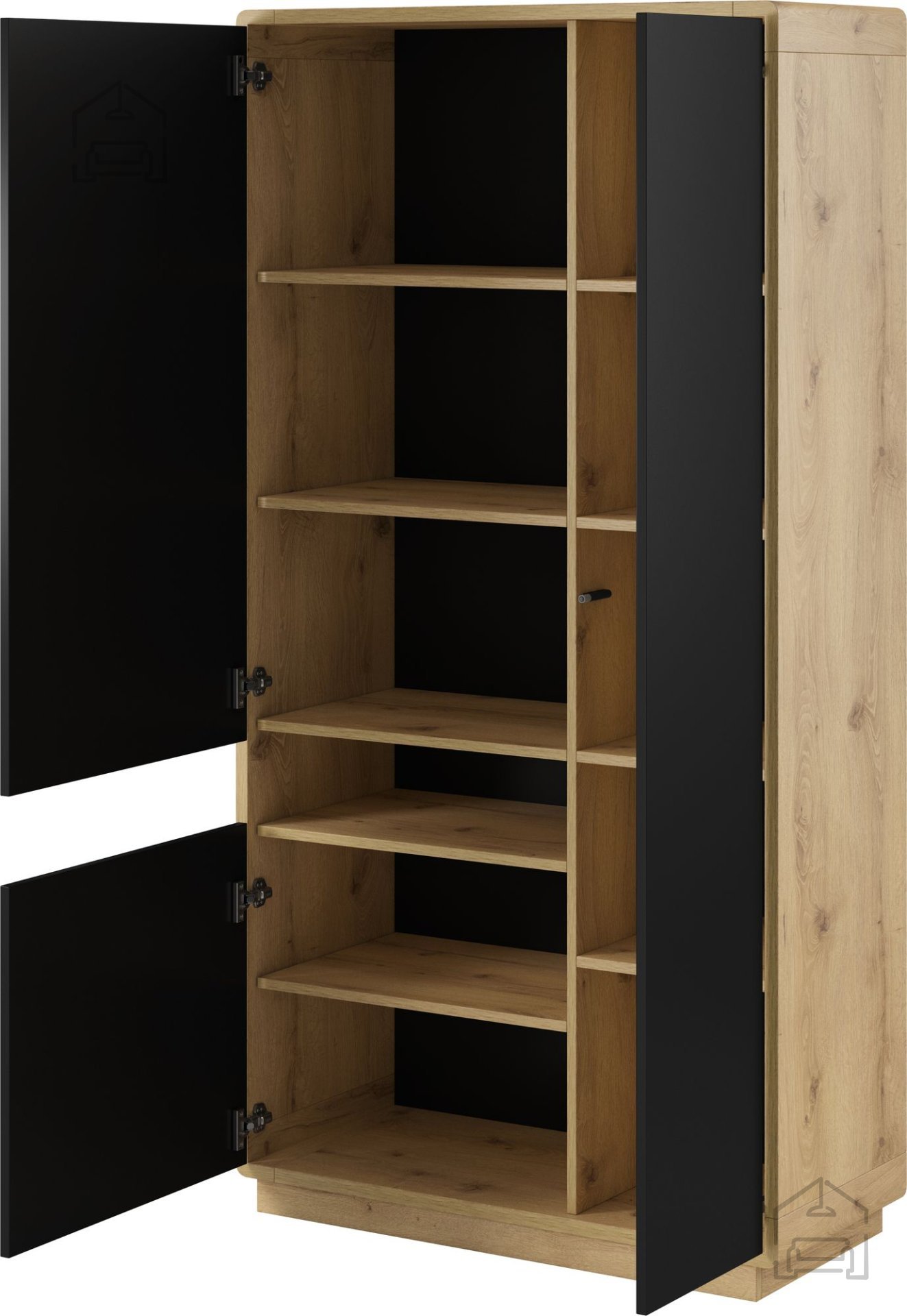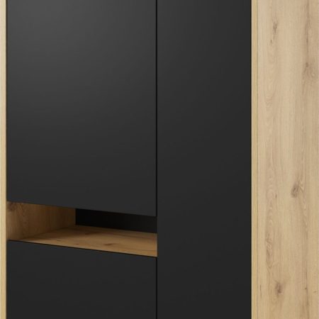 - Privlačen dizajn: kombinacija taurus hrasta in črne supermat barve daje omari sodoben in prestižen videz, ki bo dopolnil vašo notranjo opremo.