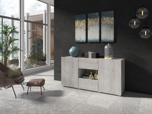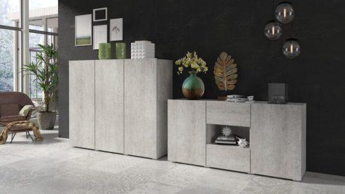 Barva fronta: beton coloradoDimenzije: 1370x690x380 mm Kolekcija Delos je ponudba za ljubitelje modernih prostorov. Pohištvo je bilo oblikovano v beli barvi in trenutno modnega colorado betona, zahvaljujoč temu se bo odlično prilegal kateremu koli prostoru. Pohištvo Delos odlikujejo minimalistične oblike, njegova dodatna prednost je LED osvetlitev, ki celotni aranžma spremeni v sekundi in doda inovativen videz.