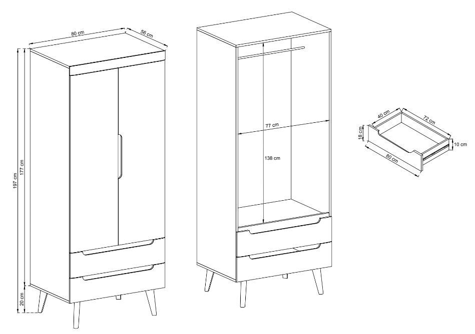 - Udobno zapiranje predalov je doseženo s tihimi zapiralnimi vodili in kovinskimi ročaji. To zagotavlja ne samo eleganten videz, ampak tudi praktičnost in udobje pri vsakodnevni uporabi omare.