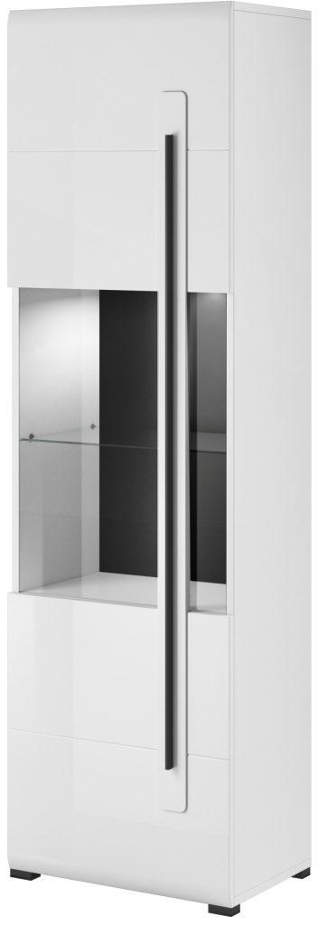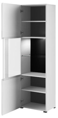 Vitrina je izdelana iz visokokakovostnega MDF materiala, ki je znan po svoji trpežnosti in odpornosti na poškodbe. Bela sijajna barva front in korpusa dodaja sodoben pridih, hkrati pa omogoča enostavno čiščenje in vzdrževanje. Poleg tega je možnost izbire LED osvetlitve odličen način, da prilagodite vitrina vašim osebnim potrebam in željam.