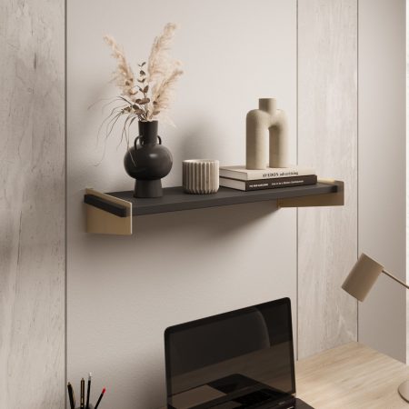 Barva: zlata/črnaDimenzije: 600x100x235 mm Polica Ovo je sodoben in stiliziran dodatek k notranjosti, ki se ponaša z izvirnim dizajnom in visoko kakovostjo izdelave. Značilna, zaokrožena oblika police prinaša v prostor harmonijo in subtilnost, kar ji daje edinstven slog. Ta model je bil zasnovan z mislijo na ljubitelje minimalističnega oblikovanja, ki cenijo estetiko v povezavi s funkcionalnostjo.