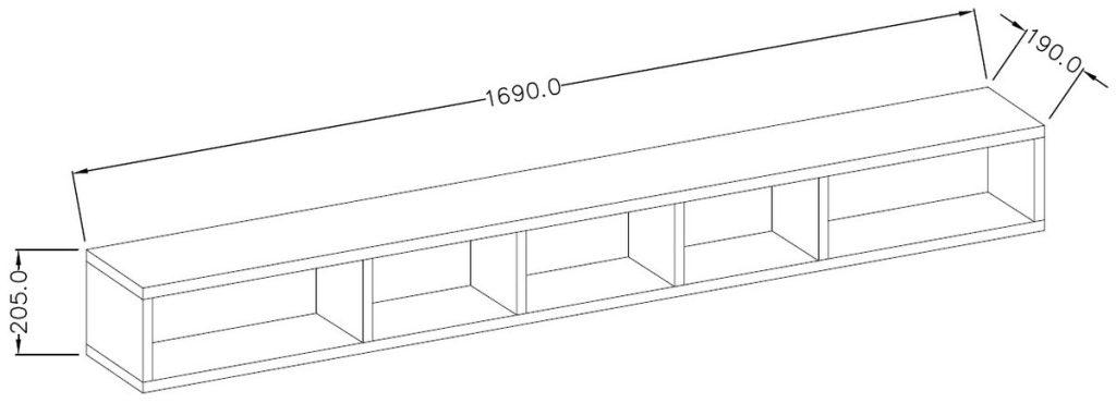- Praktične dimenzije: s svojo dolžino 169 cm in globino 19 cm, polica ponuja dovolj prostora za shranjevanje knjig, dekorativnih predmetov ali drugih potrebščin, ne da bi zavzemala preveč prostora v prostoru.