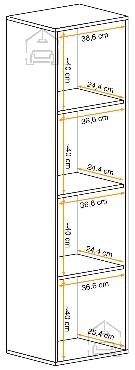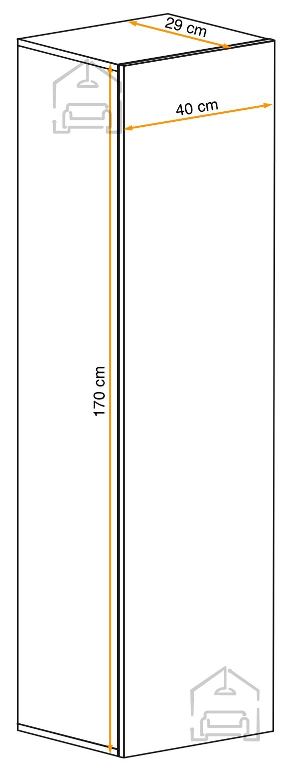 Barva fronta: bela visok sijajDimenzije: 400x1700x290 mm Viseča omarica, polnilo 3 police.