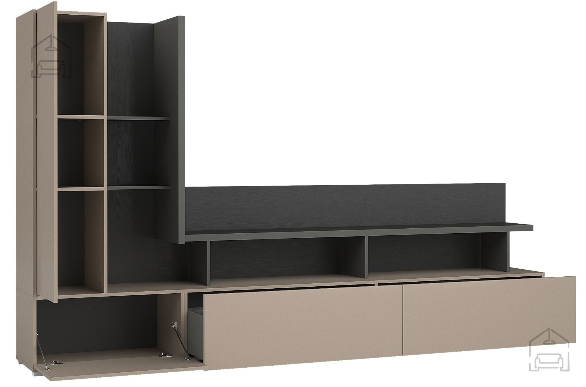 2. Sodobna estetika: nevtralni toni regala zagotavljajo, da se lepo zlije z ostalimi elementi v vašem prostoru. Kombinacija barv kongo-antracit-črn/kongo ustvarja sodoben in stiliziran videz, ki bo vašemu domu dodal prefinjenost in eleganco. Ta regal je popolna izbira za tiste, ki želijo v svoj prostor vnesti pridih modernosti.