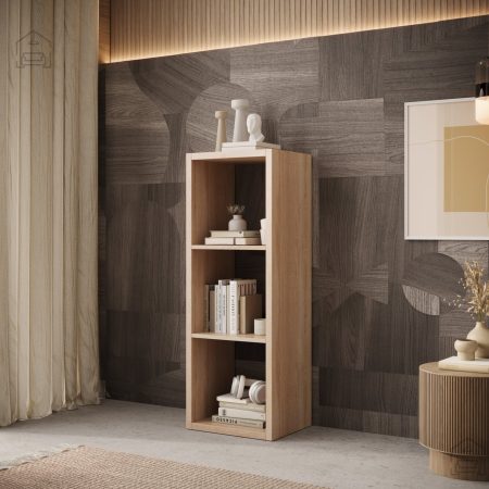 - Prostornost: s tremi prostornimi policami regal ponuja obilico prostora za shranjevanje knjig, dekoracij, dokumentov in drugih predmetov, ki jih potrebujete pri roki. Njegova kompaktna oblika omogoča optimalno izkoriščenost prostora tudi v manjših stanovanjih.
