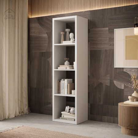 2. Funkcionalnost in prostor: oblikovan z mislijo na praktičnost, ima regal Cleo II štiri prostorne police, ki vam omogočajo organizacijo in shranjevanje knjig, okraskov, dokumentov ali drugih potrebščin. Njegova vitka struktura je kot nalašč tako za manjše prostore kot za večje dnevne sobe ali pisarne.