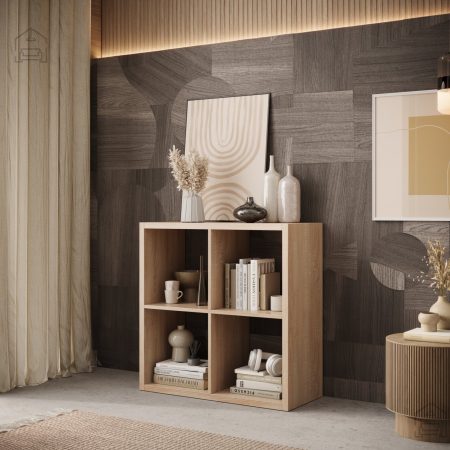 Regal Cleo III je izjemno vsestranski. Njegove štiri police ponujajo dovolj prostora za knjige, dokumente, škatle za organizacijo, ali dekorativne predmete, kot so vaze in sobne rastline. Njegova kompaktna velikost omogoča namestitev v manjše prostore, kot so otroške sobe ali kotički v pisarnah, ne da bi prostor postal prenatrpan. Prav tako je idealen za večje prostore, kjer lahko deluje kot osrednji element notranje opreme.