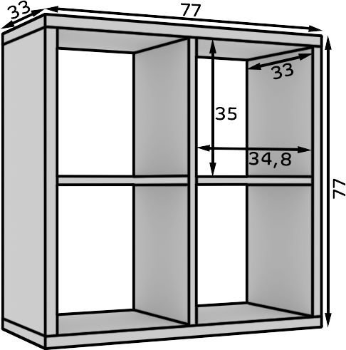 - Omara vključuje 6 odprtih prostorov, ki so idealni za knjižno omaro ali razstavo majhnih okraskov. Ta odprti dizajn omogoča enostaven dostop do vsebine omare in ustvarja privlačno zasnovo za izpostavljanje vaših najljubših predmetov.
