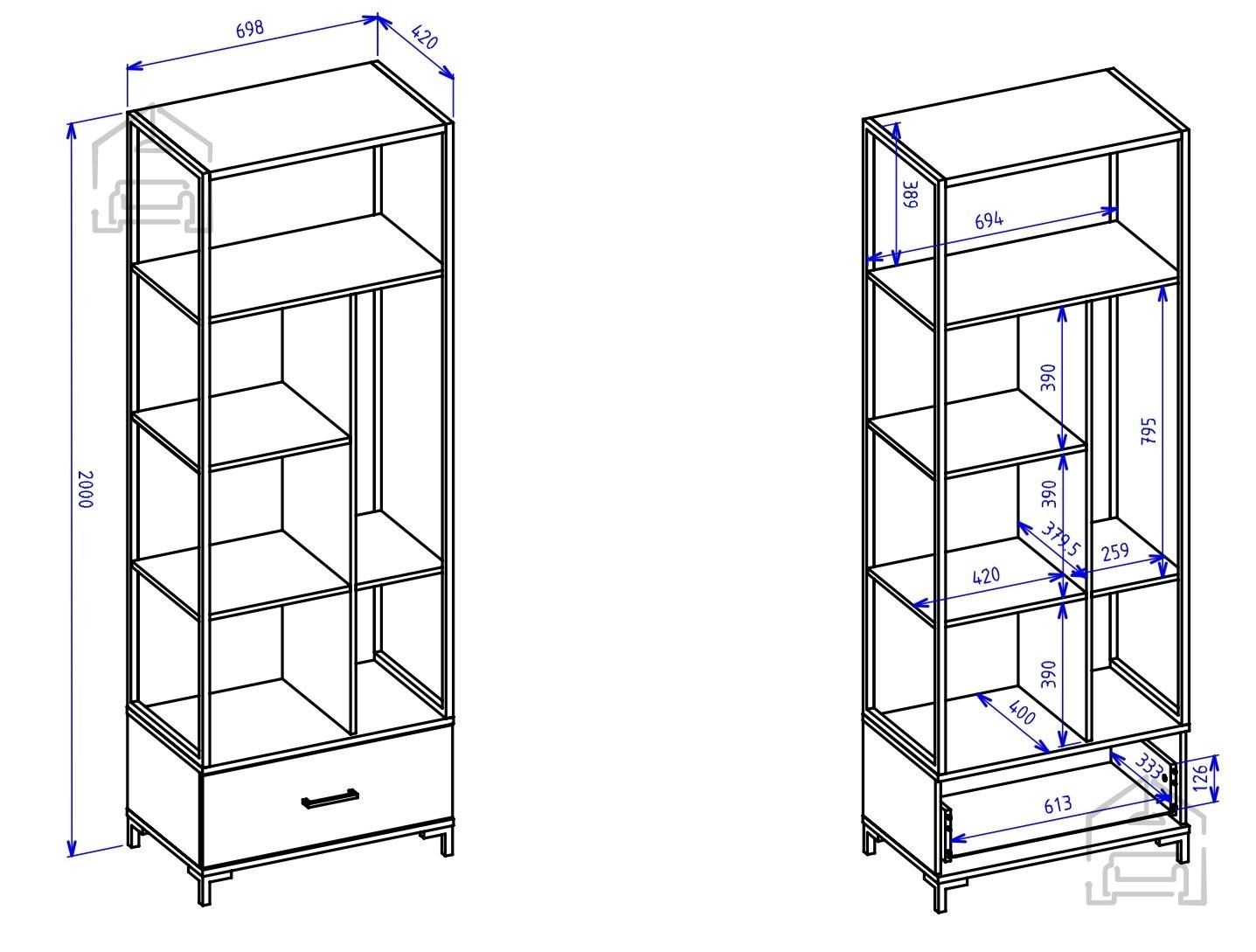 Barva: Bela Nogice: Črne Dimenzije: 700x2000x420 mm Odličen regal Kammy kateremu se prilega pisarniška miza, ki jo ga odlično dopolnila v kolikor se boste odločili naročiti oba pohištvena elementa. | Material: Pohištvena plošča