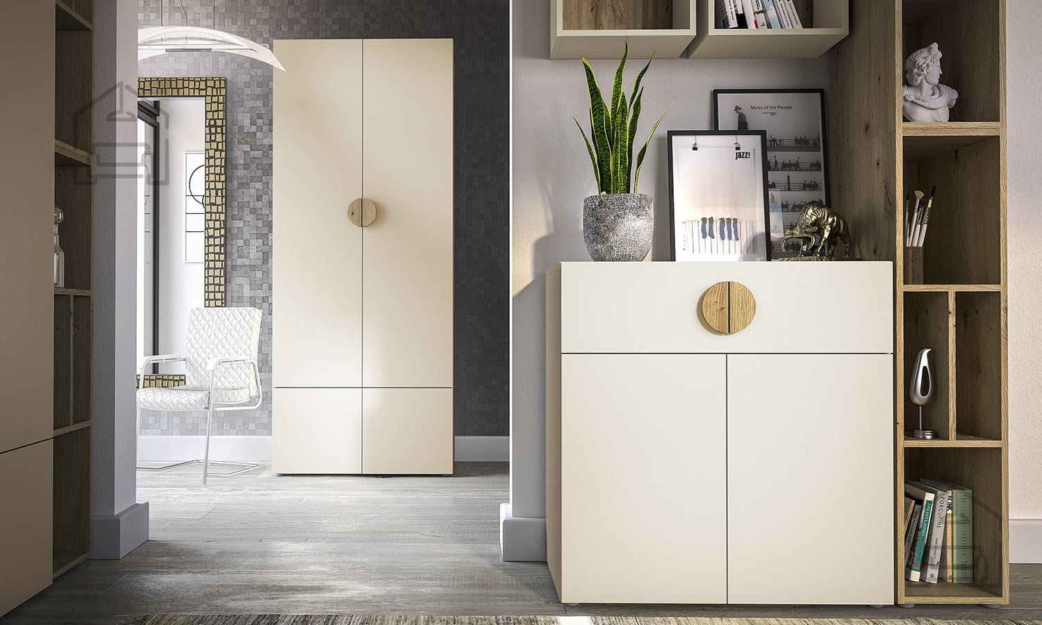 Omeniti velja, da imajo ročaji pohištva iz kolekcije Melo obliko kroga, kar jim daje moderen in minimalističen videz. Zahvaljujoč kombinaciji umirjenih barv lesa in subtilnih barvnih poudarkov bo prostor postal oaza miru in izraz bližine naravi. | Material: Iveral in MDF