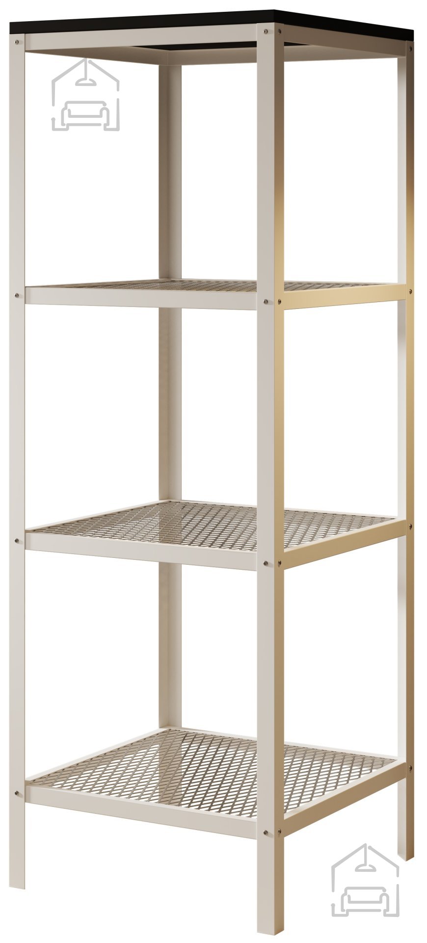 Struktura regala je izdelana iz trdne kovine, kar zagotavlja stabilnost in dolgo življenjsko dobo. Kovinski elementi so prašno lakirani, kar povečuje odpornost na praske in korozijo, kar pomeni, da bo regal Reli ohranil svoj videz tudi po dolgotrajni uporabi. Ta kombinacija materialov ne le, da zagotavlja funkcionalnost, temveč tudi doda pridih industrijskega stila, ki je danes tako priljubljen.