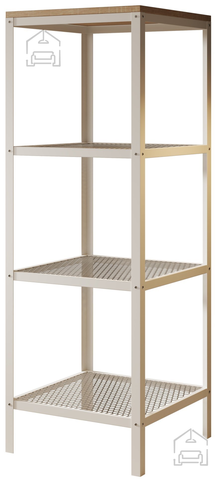 Struktura regala je izdelana iz trdne kovine, kar zagotavlja stabilnost in dolgo življenjsko dobo. Kovinski elementi so prašno lakirani, kar povečuje odpornost na praske in korozijo, kar pomeni, da bo regal Reli ohranil svoj videz tudi po dolgotrajni uporabi. Ta kombinacija materialov ne le, da zagotavlja funkcionalnost, temveč tudi doda pridih industrijskega stila, ki je danes tako priljubljen.