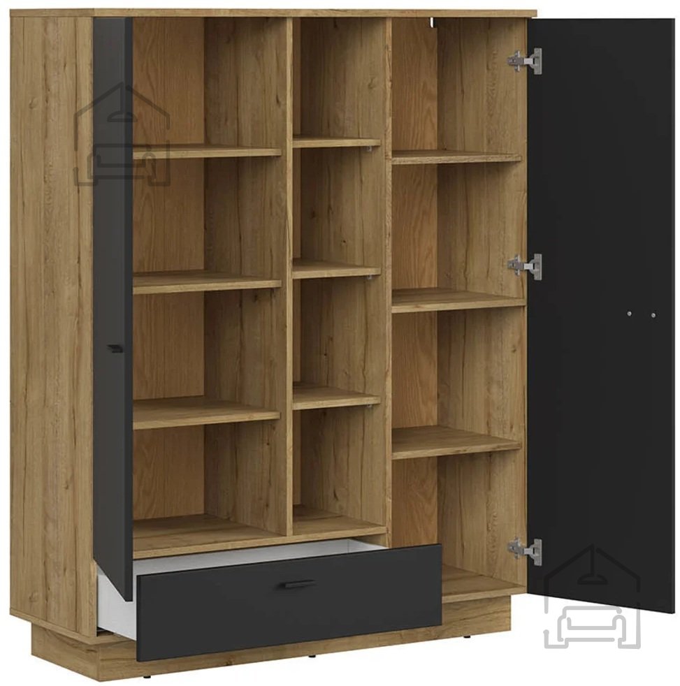 Njegova inteligentna zasnova – ki vključuje prostorno predalnico in funkcionalne police za vrati – omogoča svobodno shranjevanje dokumentov, oblačil ali posteljnine, kar zagotavlja urejenost in red v prostoru. Na odprtih policah v srednjem delu lahko postavite knjige ali albume. Obsežna površina je idealno mesto za okvirje s fotografijami, svetilko ali spominke z dopusta.