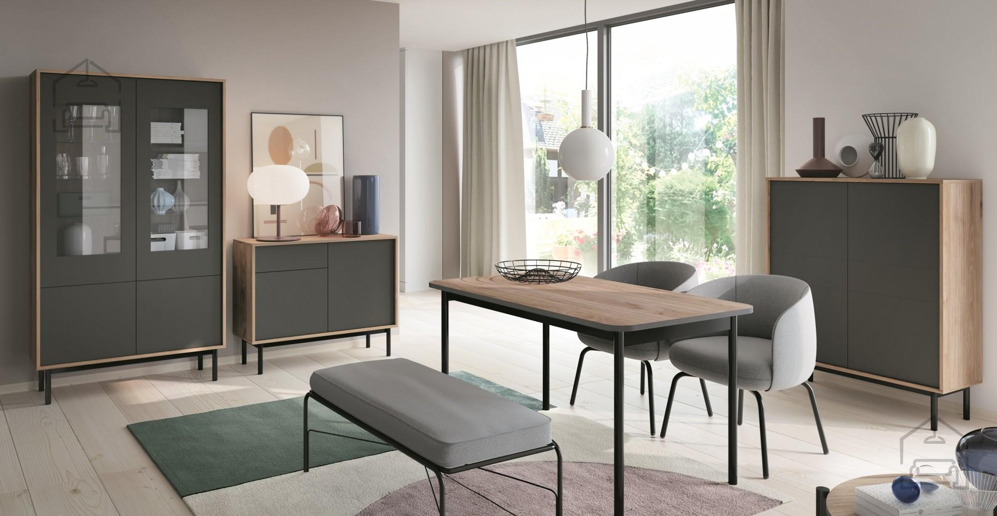 Barva: Lefkas oak in črna Dimenzije: 1650x940x430 mm Pohištveni elementi dnevnih sob so si bolj ali manj podobni, ločijo pa se v različnih stilih, barvah in predvsem detajlih. Prav detajli so tisti, ki določeno linijo oz. kolekcijo naredijo unikatno, posebno in toliko bolj atraktivno. Če sodite med tiste, ki date na mogočen izgled, potem se vam splača ozreti po dnevni sobi Baltica – lefkas. Vintage izgledIzjemen vintage izgled, ki ga ustvari barva lefkas hrasta z rahlimi detajlnimi poudarki črne, bo oplemenitil prav vsako dnevno sobo. Dnevna soba Baltica – lefkas, za katero je poskrbel poljski proizvajalec notranjega pohištva ML Meble, je tako zelo priljubljen izbor uporabnikov naše spletne strani zaradi svojega mogočnega, robustnega, a elegantnega izgleda v enem. Še posebej bo do izraza prišla v večjih (tudi zaradi precejšnjega števila različnih elementov) in bolj svetlih dnevnih prostorih. V kolikor ocenjujete, da je barva lefkas hrasta (lefkas oak) za vaš dnevni prostor pretemna, lahko posežete po svetlejšem odtenku, in sicer boste to dnevno sobo našli v iskalniku pod imenom Dnevna soba Baltica. Kolekcija Baltica – lefkas je sestavljena iz številnih elementov. Poglejmo, katerih: