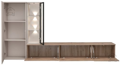 Izjemen vintage izgled, ki ga ustvari barva lefkas hrasta z rahlimi detajlnimi poudarki črne, bo oplemenitil prav vsako dnevno sobo. Dnevna soba Baltica – lefkas, za katero je poskrbel poljski proizvajalec notranjega pohištva ML Meble, je tako zelo priljubljen izbor uporabnikov naše spletne strani zaradi svojega mogočnega, robustnega, a elegantnega izgleda v enem. Še posebej bo do izraza prišla v večjih (tudi zaradi precejšnjega števila različnih elementov) in bolj svetlih dnevnih prostorih. V kolikor ocenjujete, da je barva lefkas hrasta (lefkas oak) za vaš dnevni prostor pretemna, lahko posežete po svetlejšem odtenku, in sicer boste to dnevno sobo našli v iskalniku pod imenom Dnevna soba Baltica.