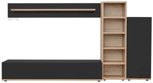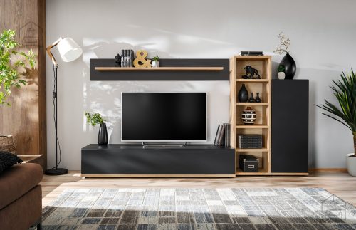 Izdelan v tovarni ASM Meble na Poljskem, regal Silk 3 združuje evropsko kakovostno izdelavo in pozornost do detajlov. Njegova barva korpusa v elegantnem antracitu in fronta v naravnem wotanu ustvarjata harmoničen kontrast, ki se brezhibno vključuje v različne stile notranje opreme, od moderne do klasične.