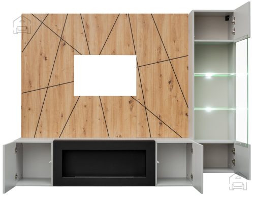 Ena izmed ključnih prednosti regala Xari G-K je njegova izjemna funkcionalnost. Regal vključuje dve stranski omarici z vrati, ki ponujata dovolj prostora za shranjevanje vaših medijskih naprav, knjig ali drugih predmetov. Sredinski del regala je namenjen biokaminu, ki ne le da prostoru toplino, ampak tudi ustvarja prijetno in sproščujoče vzdušje. Biokamini so znani po svoji varnosti in enostavni uporabi, saj delujejo na bioetanol, kar pomeni, da ni potrebe po tradicionalnem kurjenju lesa.