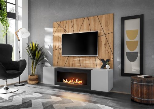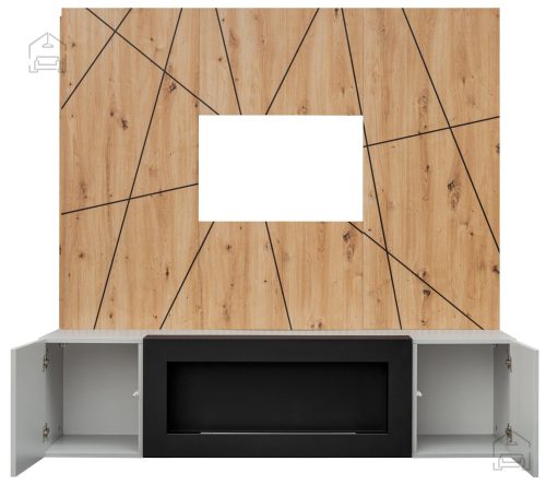Izdelan v priznani tovarni ASM Meble na Poljskem, dnevni TV regal Xari G2-K združuje kakovost, inovativnost in čudovit dizajn. Naj bo vaš dnevni prostor odraz vaše osebnosti z regalom, ki ponuja več kot le prostor za vaš TV. Naročite svoj Xari G2-K še danes in doživite popolno preobrazbo vašega doma. Biokamin: Sodobna udobnost brez kompromisovBiokamin, integriran v regal Xari G2-K, je popolna rešitev za tiste, ki želijo uživati v toplini ognja brez tradicionalnih omejitev. Z uporabo biogoriva zagotavlja čist, živ plamen brez pepela ali dima. To pomeni, da ne potrebujete posebnih dovoljenj za njegovo namestitev, saj je primeren tudi za stanovanja. Poleg tega je biokamin zasnovan tako, da je varna uporaba zagotovljena, saj oddaja le minimalne količine vodne pare in CO2. Izbira Dnevnega TV regala Xari G2-K pomeni, da boste uživali v estetski dovršenosti in funkcionalnosti, ki bo vaš dom spremenila v oazo udobja in stila. Ne odlašajte, temveč v svojem domu ustvarite prostor, kjer se boste vedno znova radi vračali. | Material: Pohištvena plošča