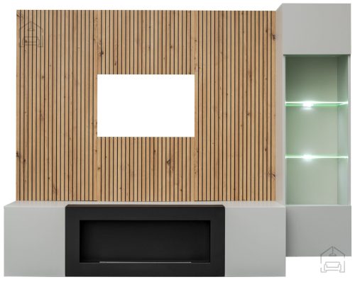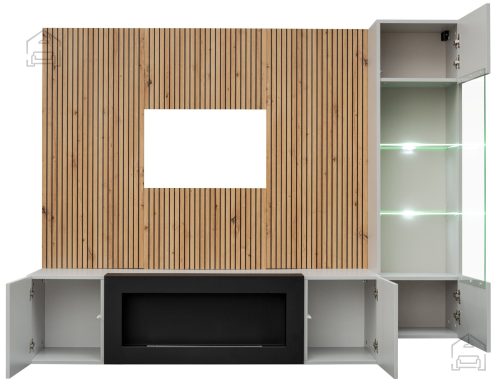 • Funkcionalnost: Dve stranski omarici s vratci in komorami ter osrednji del z biokaminom, ki poskrbi za prijeten ambient.