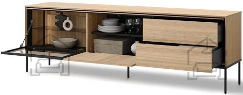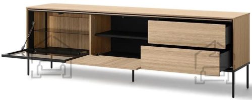 Vnesite edinstven čar v svojo dnevno sobo in uživajte v funkcionalnosti naše hrastove TV komode. To je naložba v pohištvo, ki bo združilo estetiko s praktično uporabo in ustvarilo popoln prostor za vaš multimedijski center. | Material: Iveral in MDF in steklo