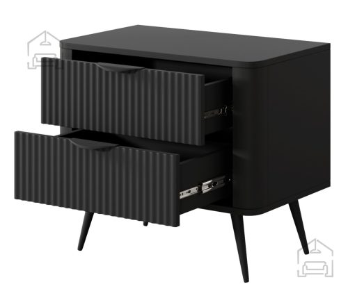 Tiho zapiranjeDimenzije: 632x553x380 mm Nočna omarica Lante 2S/ G predstavlja eleganco in prefinjenost v vaši spalnici, pri čemer črna barva doda pridih razkošja in moderne estetike. Poglejmo, kaj ta barva pomeni za omarico.