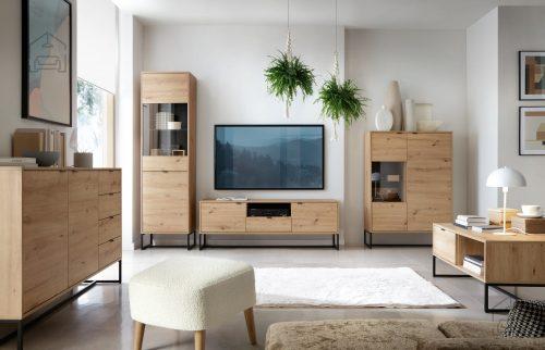 Izjemen vintage izgled, ki ga ustvari barva lefkas hrasta z rahlimi detajlnimi poudarki črne, bo oplemenitil prav vsako dnevno sobo. Dnevna soba Baltica – lefkas, za katero je poskrbel poljski proizvajalec notranjega pohištva ML Meble, je tako zelo priljubljen izbor uporabnikov naše spletne strani zaradi svojega mogočnega, robustnega, a elegantnega izgleda v enem. Še posebej bo do izraza prišla v večjih (tudi zaradi precejšnjega števila različnih elementov) in bolj svetlih dnevnih prostorih. V kolikor ocenjujete, da je barva lefkas hrasta (lefkas oak) za vaš dnevni prostor pretemna, lahko posežete po svetlejšem odtenku, in sicer boste to dnevno sobo našli v iskalniku pod imenom Dnevna soba Baltica.