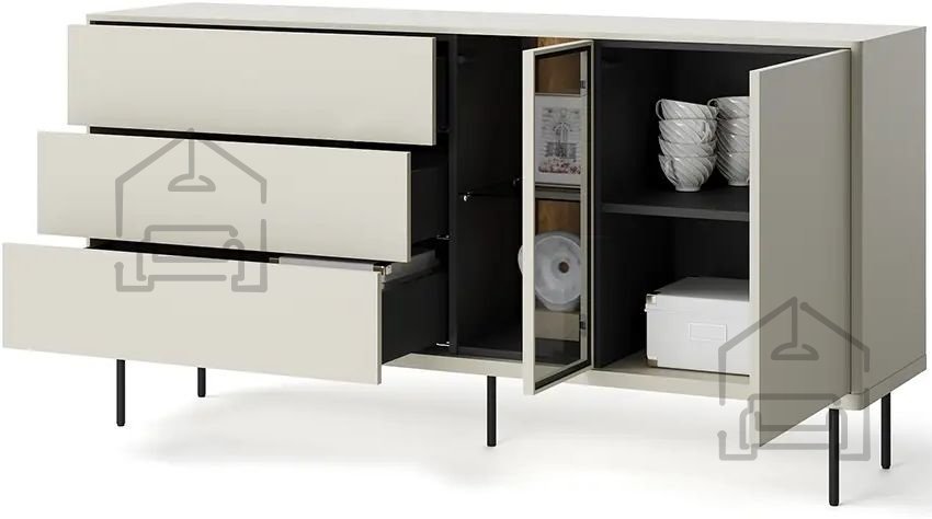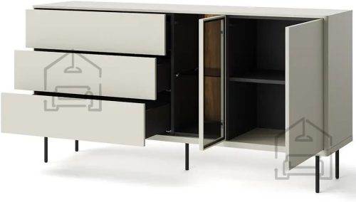 RTV omara na nogicah je naložba v stil, udobje in red. Z izbiro te vrste pohištva stavite na funkcionalnost, trajnost ter eleganten videz, ki bo poudaril lepoto tvojega interierja. To pohištvo je odporno na praske in enostavno za vzdrževanje, kar pomeni, da bo dolgo časa razveseljevalo tvoje oči. Omara na nogicah je odlična naložba, ki bo preoblikovala prostor tvoje dnevne sobe. | Material: Iveral in MDF