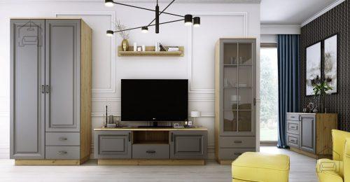 Dimenzije: 1500x500x400 mm Komplet pohištva Flawia je izdelan iz najkakovostnejših materialov, kot so MDF plošče, laminat, ABS furnir, elementi iz naravnega lesa in kaljenega stekla. To, v kombinaciji s široko paleto barv, naredi pohištvene garniture za dnevne sobe, priljubljeno izbiro za ljudi, ki iščejo elegantno in praktično notranjo opremo.