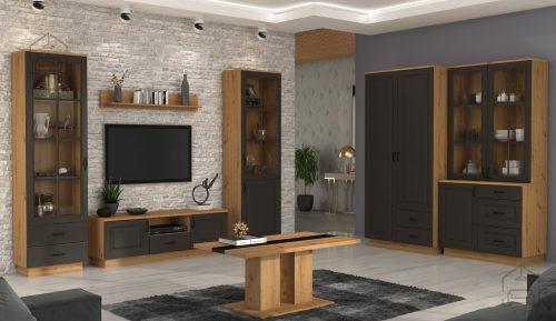 Omara Torin je prilagodljiva in jo lahko postavite samostojno ali v kombinaciji s TV omarico, visoko vitrino ali garderobno omaro. To vam omogoča, da ustvarite čudovito in funkcionalno ureditev dnevne sobe po svojih željah.