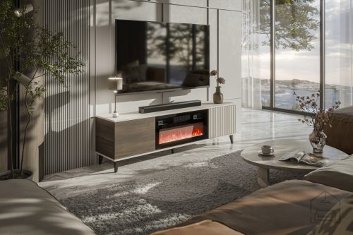 Ena izmed ključnih prednosti RTV komode Random 2 je integriran električni kamin. To omogoča, da uživate v toplini in udobju pravega kamina brez potrebe po dimniku ali gorivu. Električni kamin ne le da ogreje prostor, ampak tudi ustvari prijetno vzdušje s svojim realističnim učinkom plamenov. Poleg estetske privlačnosti in funkcionalnosti ogrevanja, RTV komoda ponuja tudi obilo prostora za shranjevanje. Police in predali so zasnovani tako, da omogočajo shranjevanje vaše multimedijske opreme, knjig, dekorativnih dodatkov in še več. To pomeni, da bo vaš prostor vedno urejen in brez nepotrebne navlake.