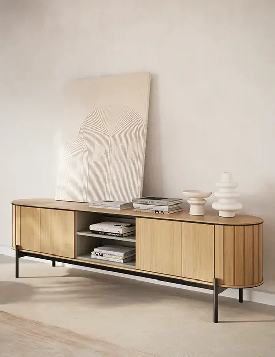 Naše nizke TV komode so izdelane iz najkakovostnejših materialov. Trdna konstrukcija zagotavlja vzdržljivost in odpornost na vsakodnevno uporabo. Poleg tega skrbno izbrani zaključki in detajli zagotavljajo eleganten videz, ki traja več let.
