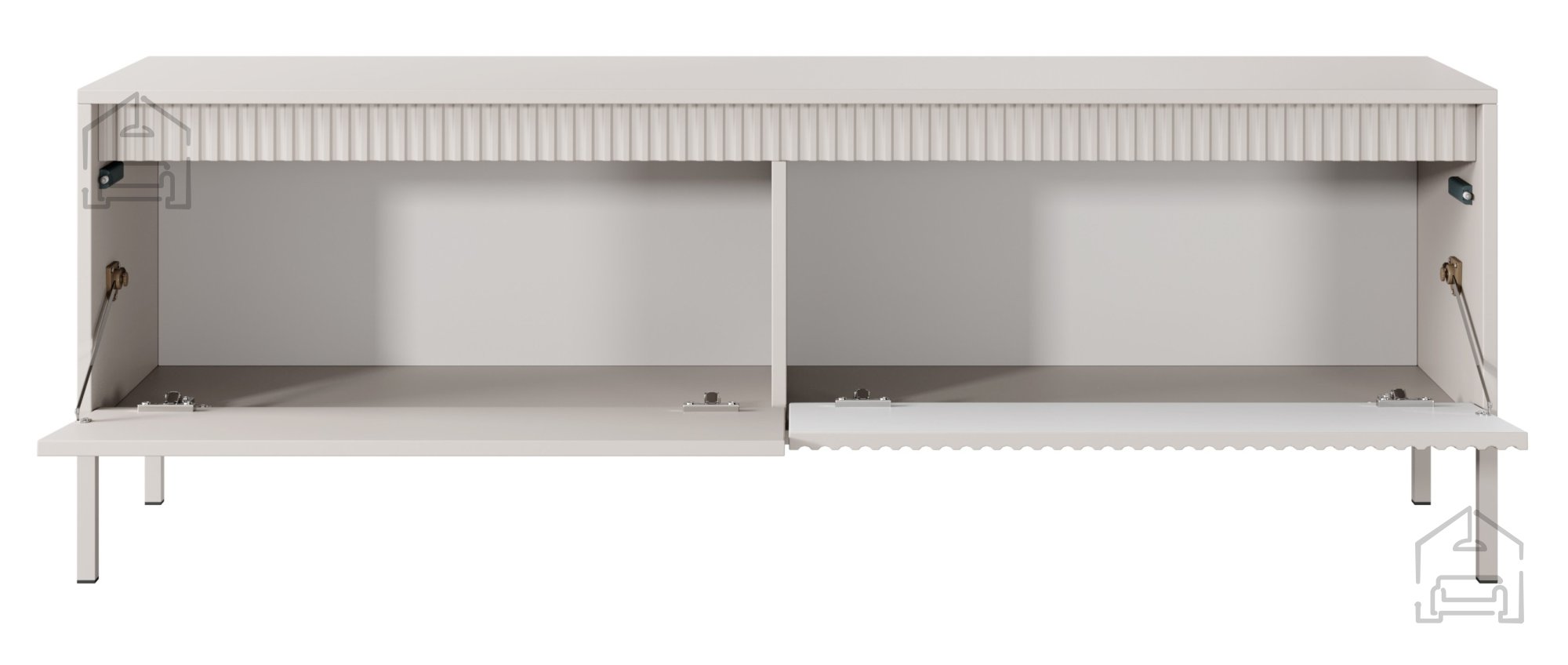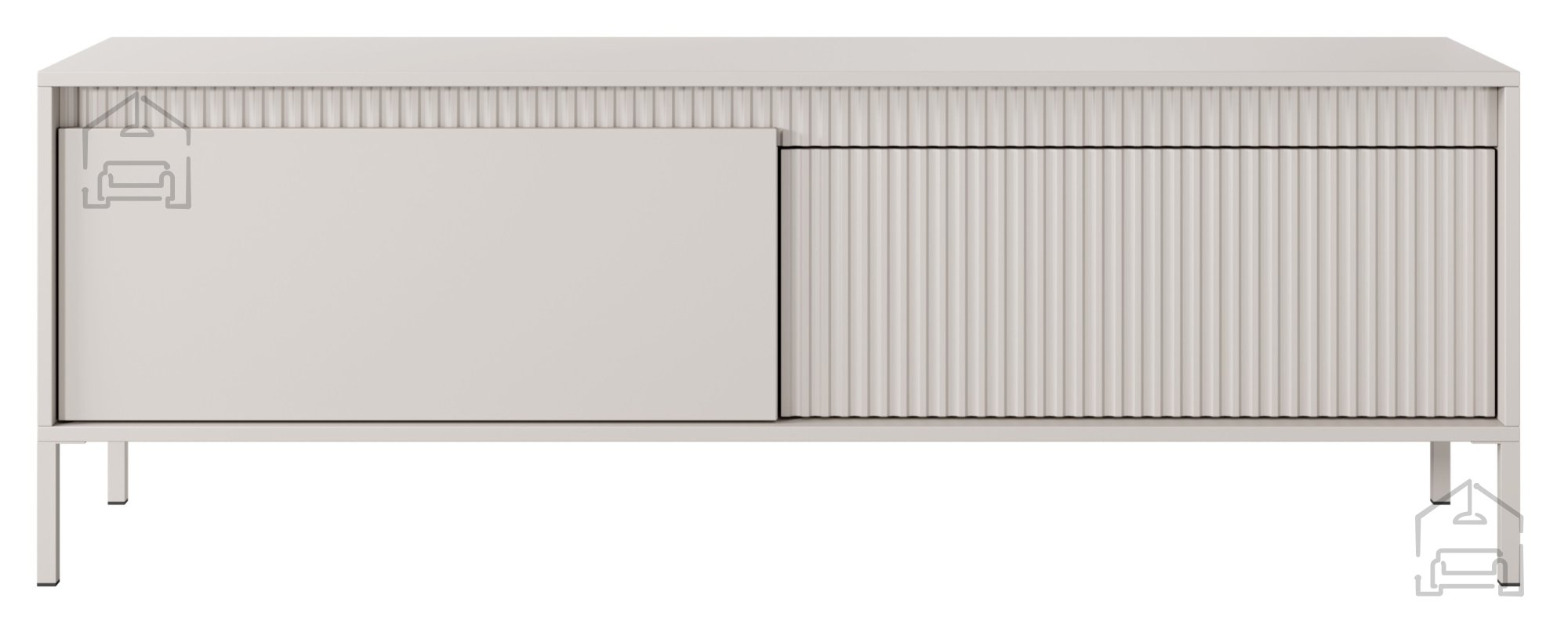 - Žlebičaste fronte dodajo edinstven značaj in teksturo pohištvu, kar ga naredi privlačno in estetsko v vaši dnevni sobi.