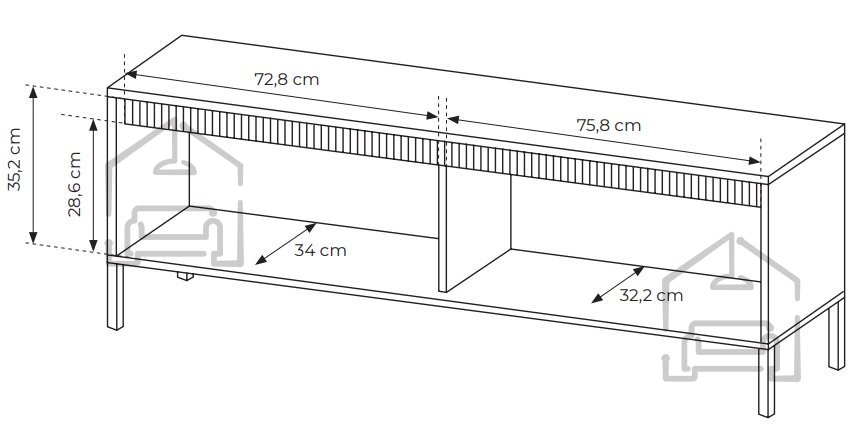 - Poleg svoje funkcionalnosti kot prostor za elektronsko opremo, bo ta TV komoda dodala tudi eleganco in stil vašemu prostoru, dopolnjujoč notranjo opremo vaše dnevne sobe.