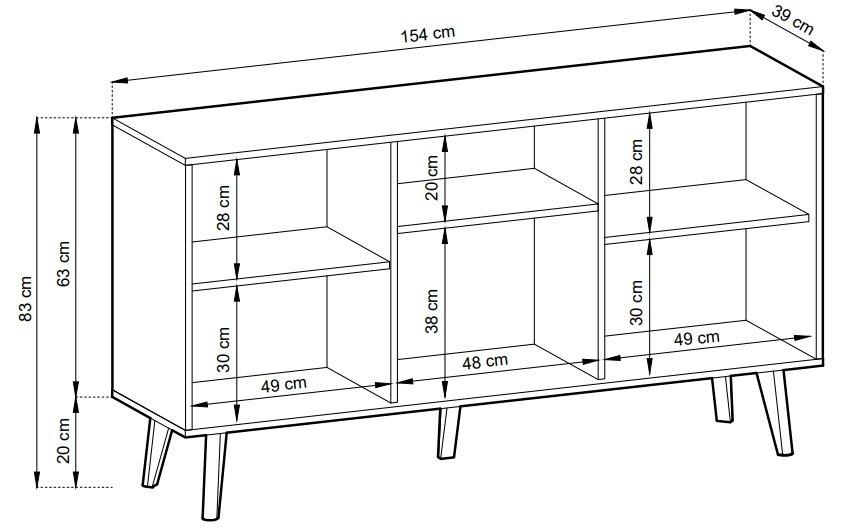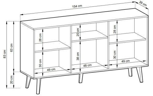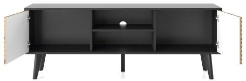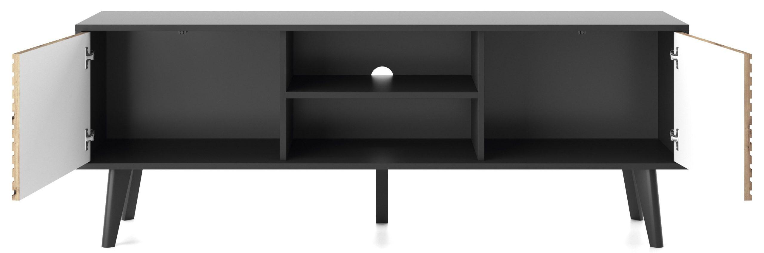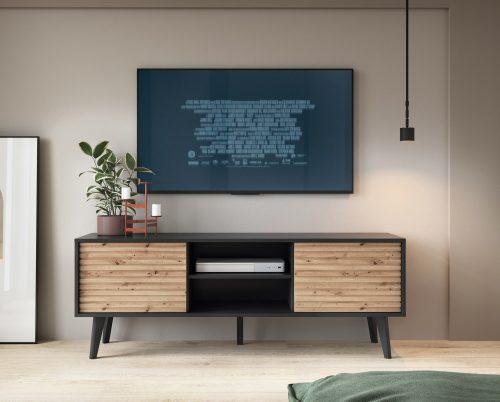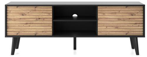 Dimenzije: 1540x560x390 mm Wilow je izvirna kolekcija pohištva za dnevno sobo v industrijskem stilu. Barve pohištva so unikatna kombinacija artisan hrasta in črne, ki bo v notranjost vnesla toplo vzdušje. Sistem je izdelan iz kvalitetne laminirane plošče in MDF, ABS robovi, ki povečujejo odpornost pohištva na poškodbe. Horizontalne linije valovitih front (obrtniški hrast) so v kontrastu s temnim glavnim delom, postavljenega visoko na diagonalne lesene nogice, ki se širijo navzgor. Sistem za odpiranje spredaj brez ročaja.