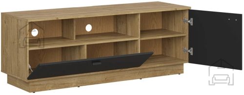 Odprte police so prostor za RTV opremo. Odprtine na zadnji strani pohištva omogočajo estetsko speljavo kablov, stabilna miza pa zagotavlja prostor za televizor in domači kino.