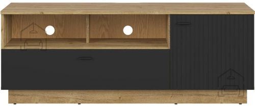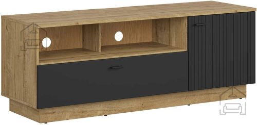 Združitev mat črne barve z odtenkom hrast Waterford daje RTV omarici Zenda zanimiv značaj. Gladek sprednji del predala se odlično ujema s profiliranimi vrati, ki imajo vertikalne utore, ki posnemajo lamelne oblike in dajejo sprednjemu delu tridimenzionalen videz ter popolno obdelavo. Za njimi najdeš prostorne police, kjer lahko shraniš vse potrebne dodatke za zabavo. Tukaj lahko postaviš zbirko filmov, daljinske upravljalnike ali igralne palice. Tako bo tvoj dnevni prostor idealno organiziran in urejen.