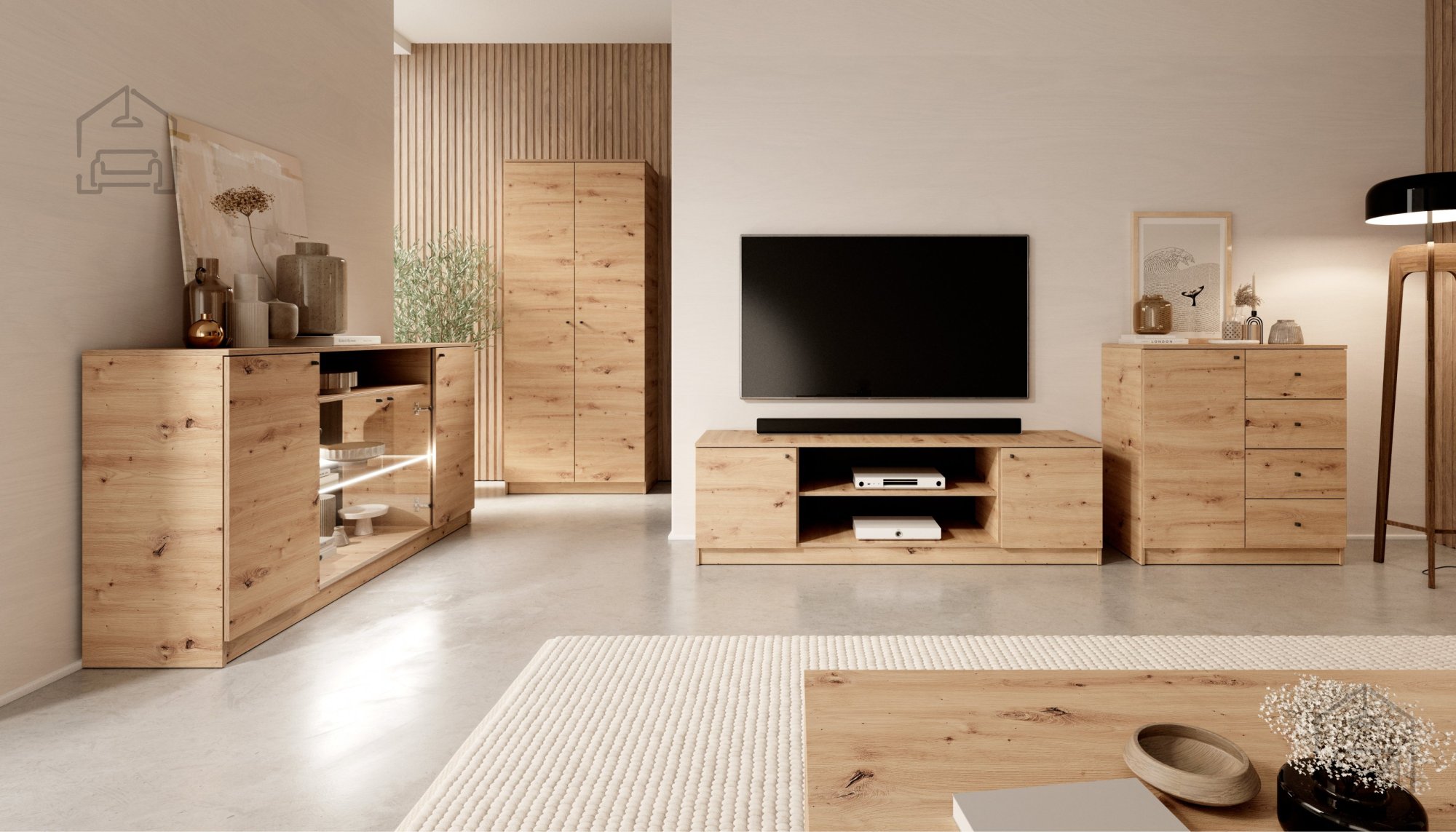 Barva: Sonoma Light + MDF Sonoma TruffleDimenzije: 1380x520x430 mm Ko opremljamo dnevni prostor, se pogostokrat odločimo za tipske dnevne sobe. Pri Svetpohistva.si si prizadevamo, da bi si lahko vsak prostor prilagodili po svojih željah. In tako je tudi pri večini dnevnih sob. To v praksi pomeni, da si lahko sami odločate, katere elemente boste vključili v vašo dnevno sobo. Tako boste lahko najbolje izkoristili prostor, vemo namreč, da so specifike prostora vselej unikatne in različne.