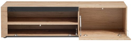 - Prostornost: Notranjost komode ponuja veliko prostora za shranjevanje, kar omogoča urejenost in enostaven dostop do vaših medijskih naprav.