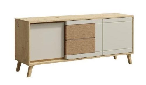 TV komoda Bruno je izdelana iz visokokakovostne laminirane plošče, ki zagotavlja trpežnost in dolgo življenjsko dobo. Laminirana plošča je znana po svoji odpornosti na praske, udarce in vlago, kar pomeni, da bo komoda ohranila svoj čudovit videz še dolga leta. Na voljo v elegantni kombinaciji barv artisan, caschmere in hrast, bo ta kos pohištva dopolnil vsak stil interierja, od klasičnega do modernega.