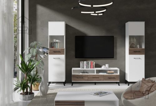 • Omara Torin je prilagodljiva in jo lahko postavite samostojno ali v kombinaciji s TV omarico, visoko vitrino ali garderobno omaro. To vam omogoča, da ustvarite čudovito in funkcionalno ureditev dnevne sobe po svojih željah.
