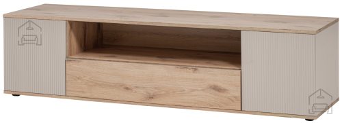 Dimenzije: 1600x420x450 mm TV Komoda Catalina: Eleganca in funkcionalnost za vaš domTV komoda Catalina je popolna izbira za vse, ki cenijo kombinacijo sodobnega dizajna in praktičnosti. Z dimenzijami 90x40x119.7 cm se brez težav prilega v dnevno sobo, spalnico ali kateri koli drug prostor v vašem domu. Izdelana iz visokokakovostnega iverala, ta komoda združuje trpežnost in eleganten videz, kar zagotavlja dolgo življenjsko dobo in brezčasni stil. Unikaten dizajn in praktičnost Komoda Catalina vas bo navdušila s svojo barvno kombinacijo hrasta viking in kashmirja, ki doda toplino in sofisticiranost vsakemu prostoru. Vrata komode so opremljena z dekorativnimi utori iz MDF, kar prispeva k njenemu elegantnemu videzu. Komoda ponuja dve vrata z notranjimi predelki, kar omogoča organizirano shranjevanje vaših stvari. Na sredini se nahaja odprt prostor, ki je idealen za postavitev multimedijskih naprav, kot je DVD predvajalnik ali televizijski sprejemnik, medtem ko dodatna vrata zagotavljajo diskretno shranjevanje. Zakaj izbrati TV komodo Catalina?