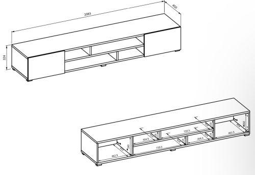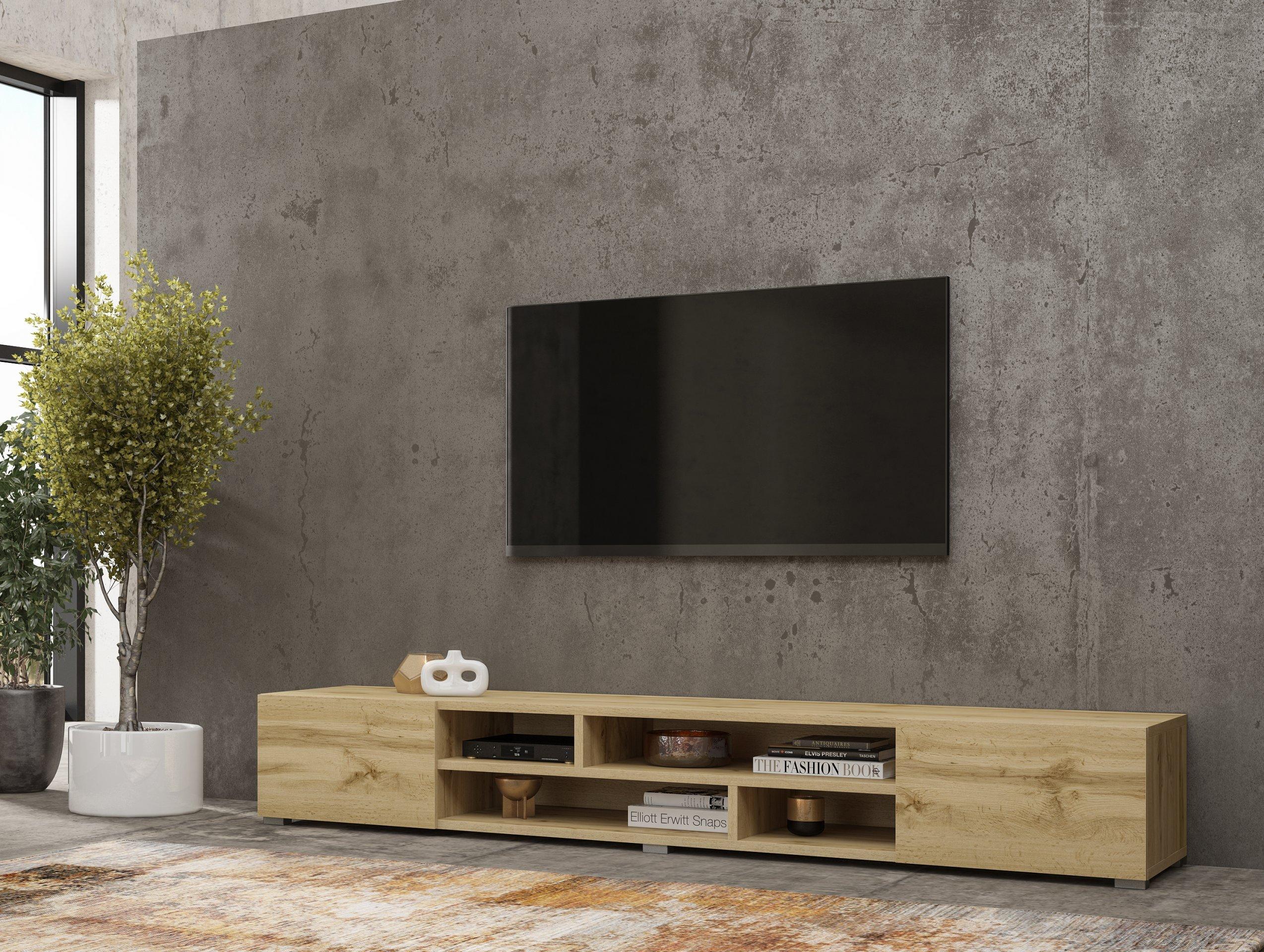 Barva korpusa: Wotan hrast Dimenzije: 2080x320x450 mm TV komoda iz kolekcije pohištva za dnevno sobo Coby | Material: Iveral in MDF